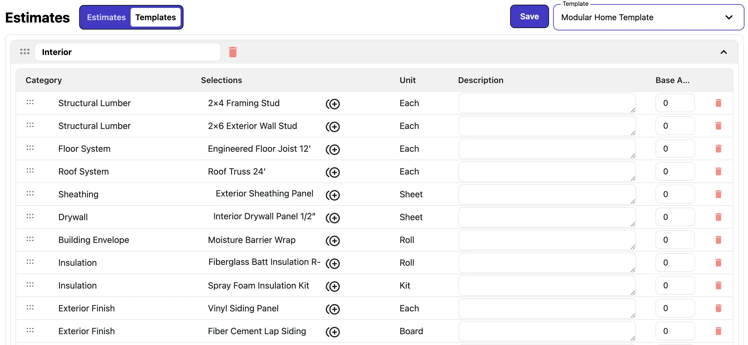 Save Templates:Reuse proven estimate layouts for common sales scenarios