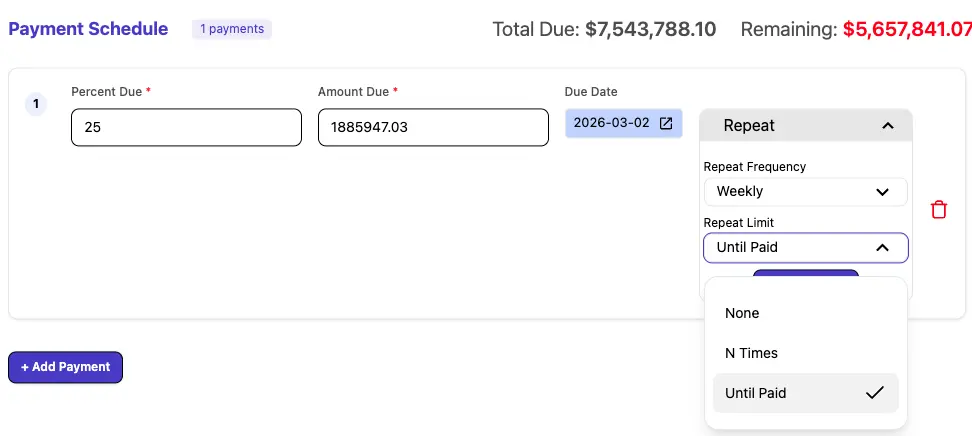 Once you have added all desired payments to the schedule, click the 'Save Payment Schedule' button to apply the changes to the invoice.