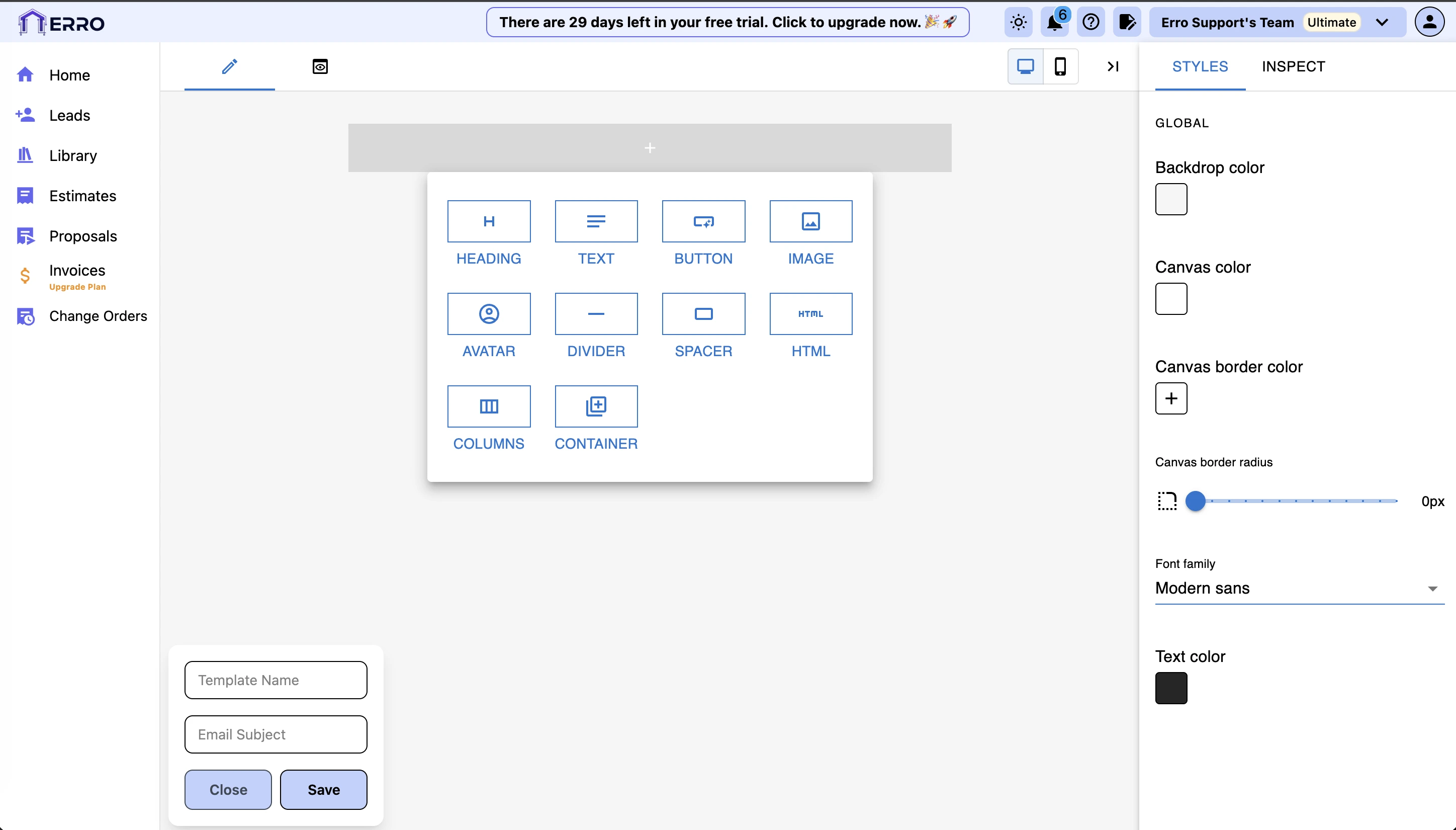 Fill in the template name, email subject and click save to create your email template.