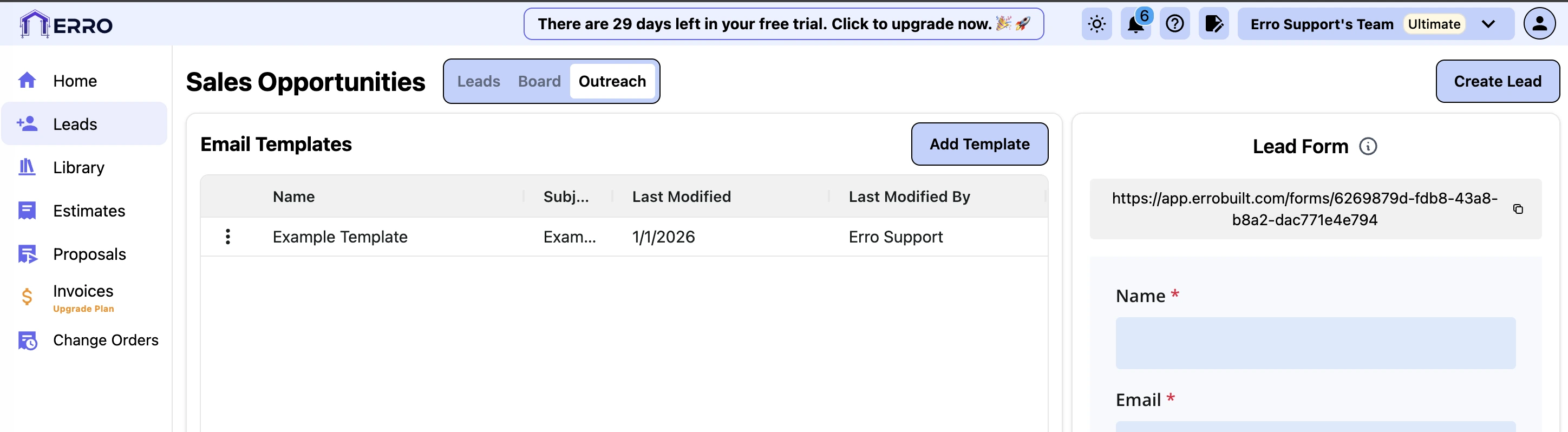 Start by going to the leads page, switching to the 'Outreach' tab, and clicking 'Add Template'.