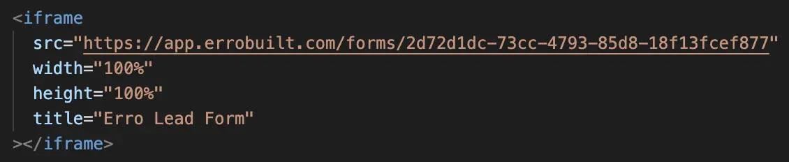 <iframe src="YOUR_LEAD_FORM_URL_HERE" width="100%" height="100%" title="Erro Lead Form" ></iframe>
