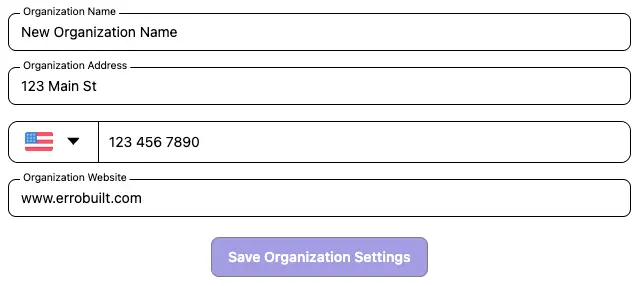 Within the Erro application, you can personalize your organization by updating its details and branding to reflect your company's identity. This will reflect across the entire application for all members of the organization to see. Follow the steps below to update your organization's details and branding.