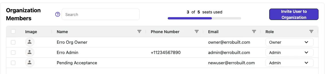 Organization members are users who have been invited to join your organization. They can have different roles and permissions based on their assigned role within the organization. The number of users within your organization is based on exactly how many seats you have purchased. For example, if you have purchased 5 seats, you can invite up to 4 other users to join your organization. If you need to add more users beyond your purchased seats, you will need to upgrade your plan to accommodate the additional users. Witthin your organization, your users can be a part of as many teams as you would like without having to pay for additional seats. This article will teach. you how to: view users in your organization, invite new users, manage user roles, and remove users from your organization, invite new users to your organization, and remove users from your organization.