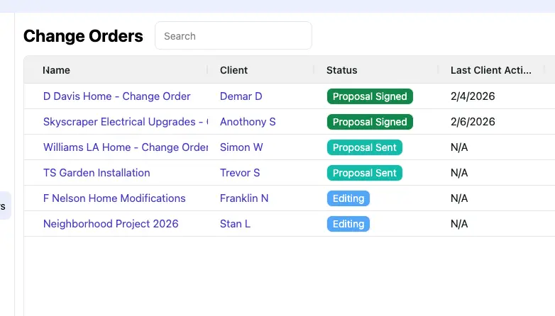 Manage change orders efficiently by linking them directly to estimates and proposals. Track payments and current pricing, update line items easily, and keep your team informed with dashboard visibility and automated approval workflows.