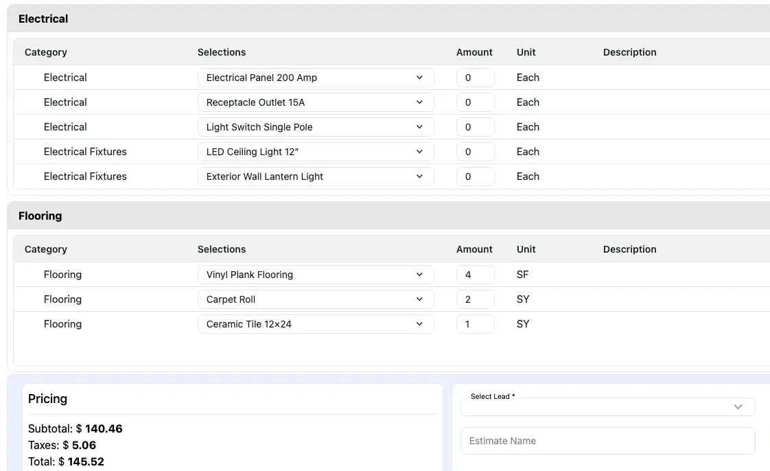 Centralize all your offerings with up-to-date pricing, tax profiles, and budget tracking. Add items to estimates, proposals, and invoices with accuracy, without relying on spreadsheets or manual calculations.