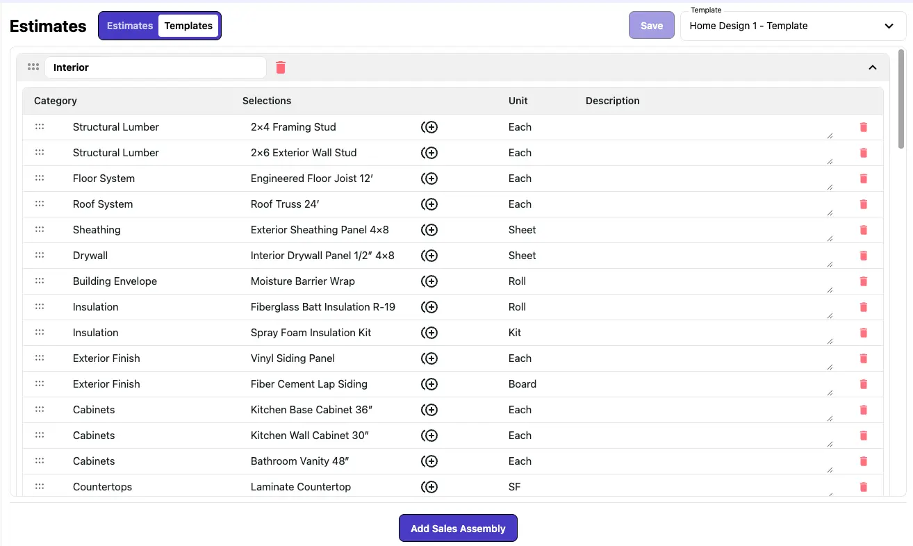 Sales assemblies ensure every estimator uses the same bundled pricing for common jobs — improving accuracy and profit margins.